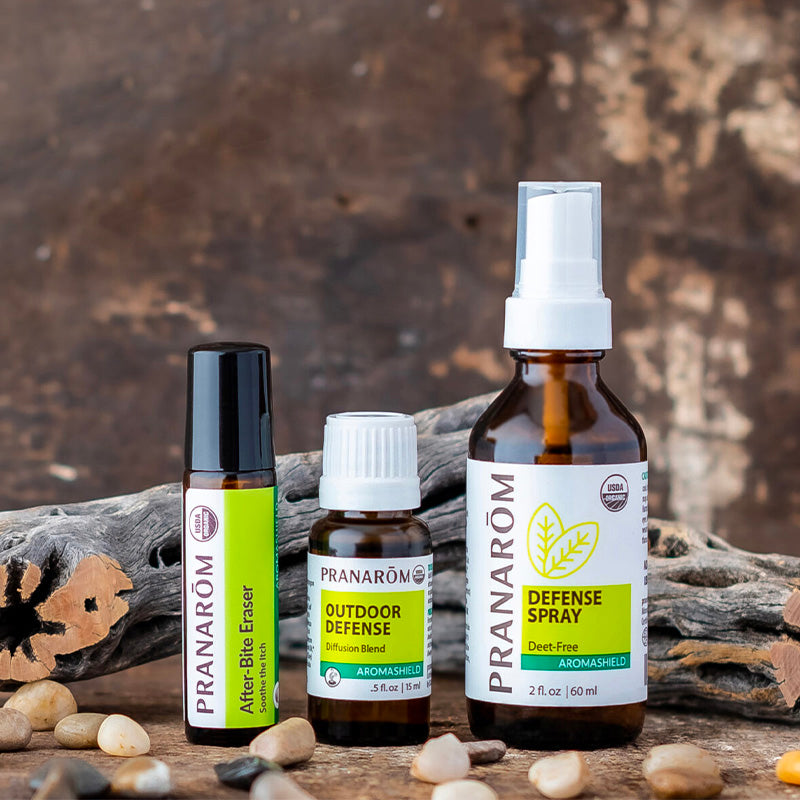 Our Aromashield Outdoor Defense collection uses pure, certified organic essential oils to defend against unwelcome pests and soothe itchy bites.