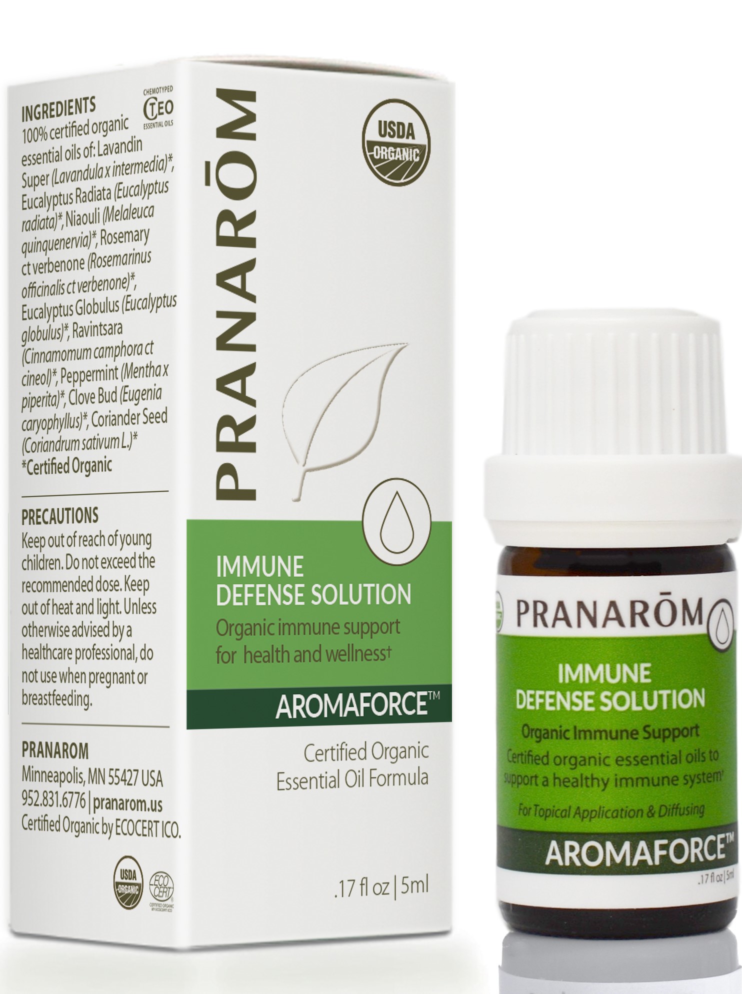 Aromaforce Immune Defense This powerful blend featuring Eucalyptus and Rosemary is here to support and defend immune and respiratory health. Immune Defense can be used topically or diffused to purify indoor air. Easy to use and great for travelling! We also have a great chest rub featuring this great blend. Check it out here!