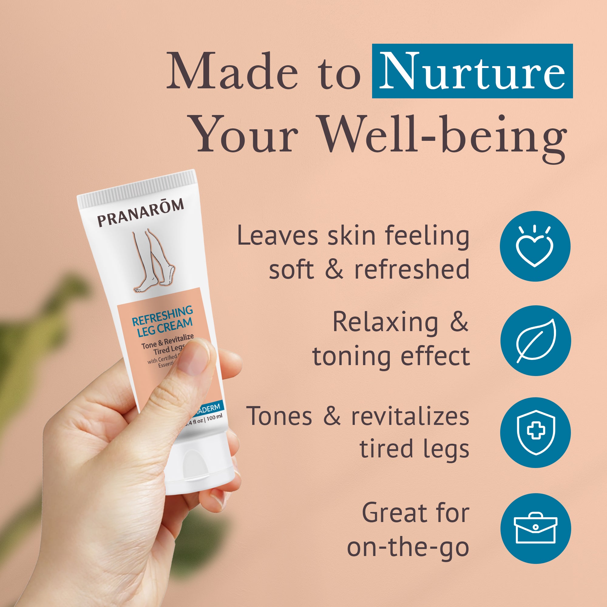 100 mlOur Refreshing Leg Cream combines the stimulating qualities of essential oils with moisturizing ingredients to relax and pamper tired legs. Promotes circulation and lymphatic drainage while leaving skin feeling minty and refreshed.