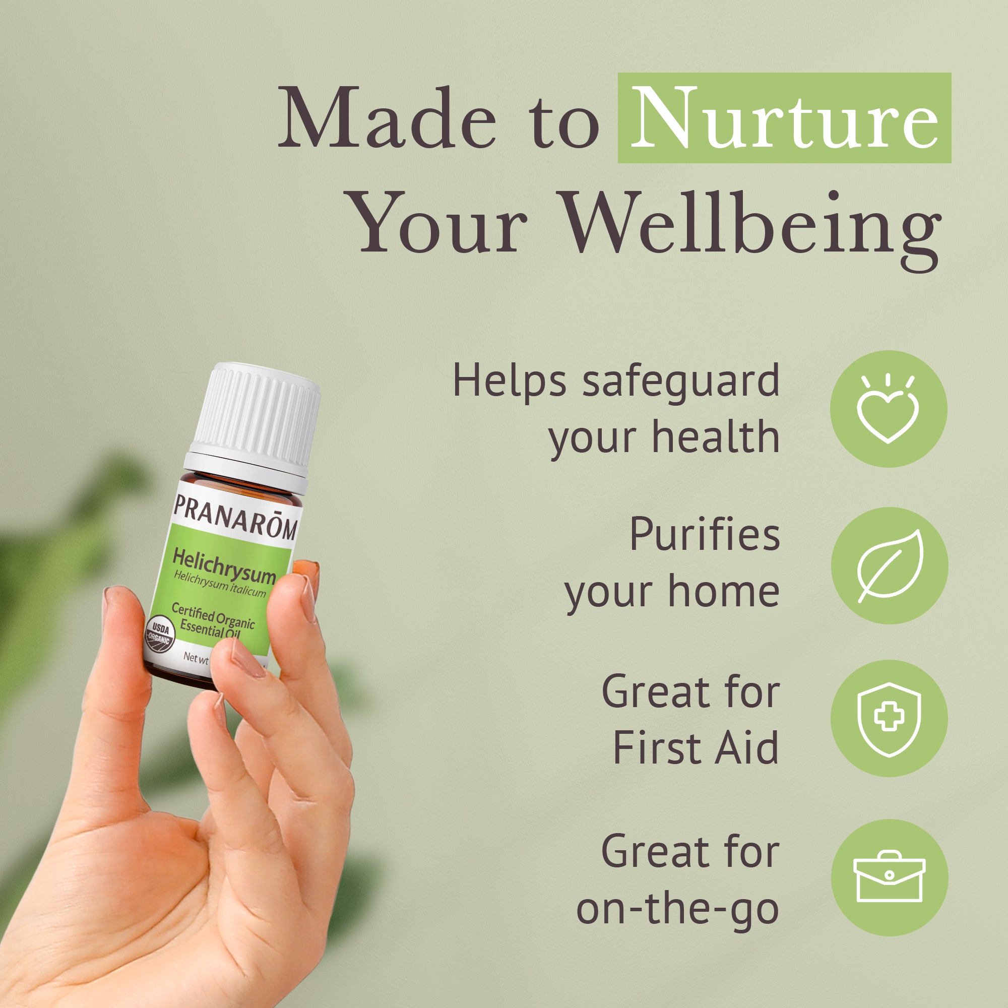 5 ml - OrganicAlso known as everlasting or immortelle, Helichrysum is revered for its rejuvenating and calming benefits for the skin. 100% pure, certified organic Helichrysum italicum essential oil from Bosnia, Herzegovina and Croatia.