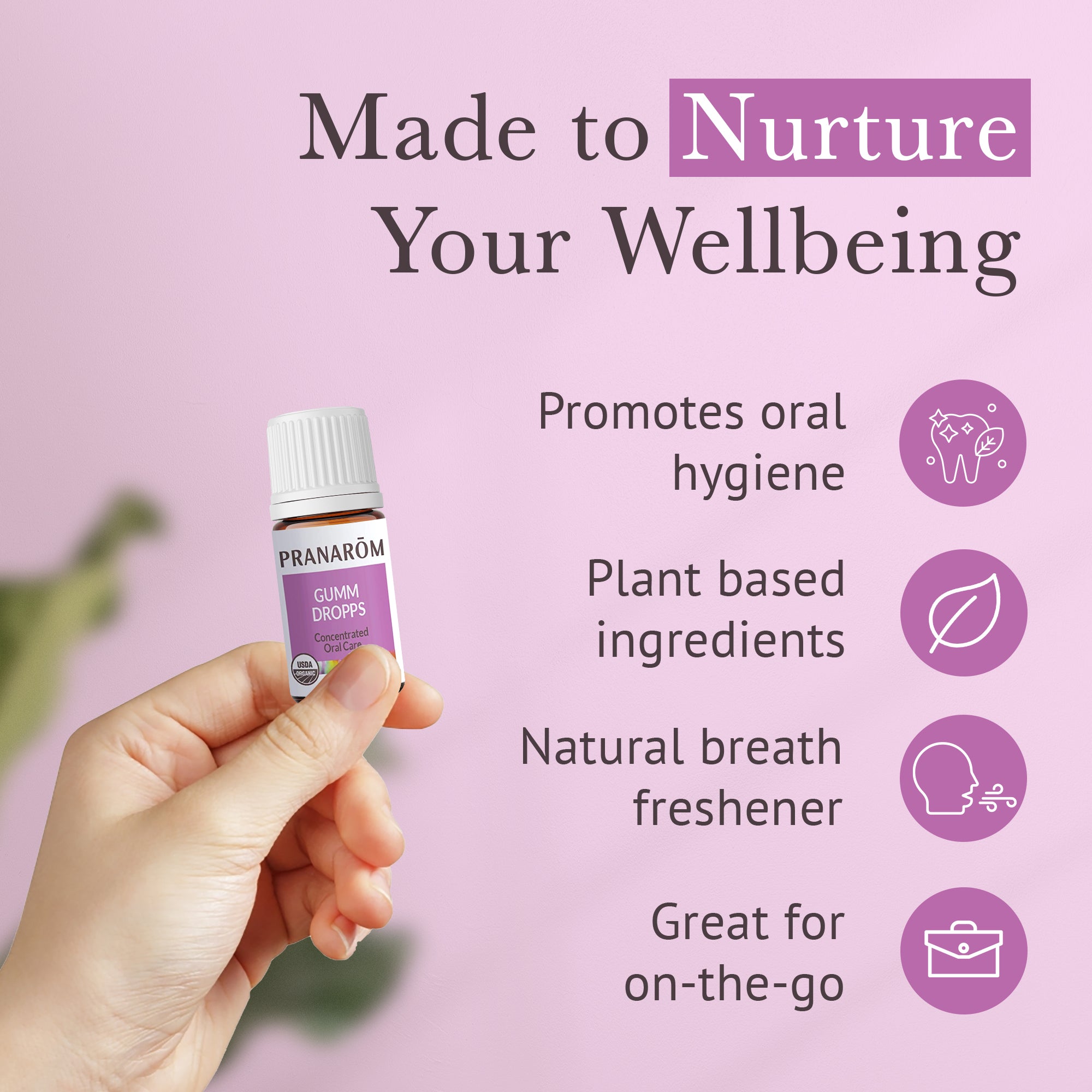 5 ml - OrganicSupport oral health and minty fresh breath with this versatile formula. Gumm Dropps can easily be added to toothpaste, floss or a diy mouth wash. 100% pure, certified organic essential oils.