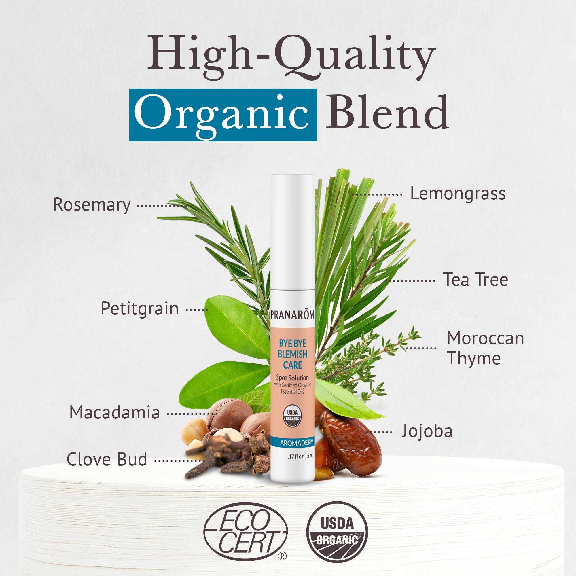 Rosemary, petitgrain, roha, Moroccan thyme, lemongrass, tea tree & clove bud essential oils all work to calm, purify & balance the area of concern.
