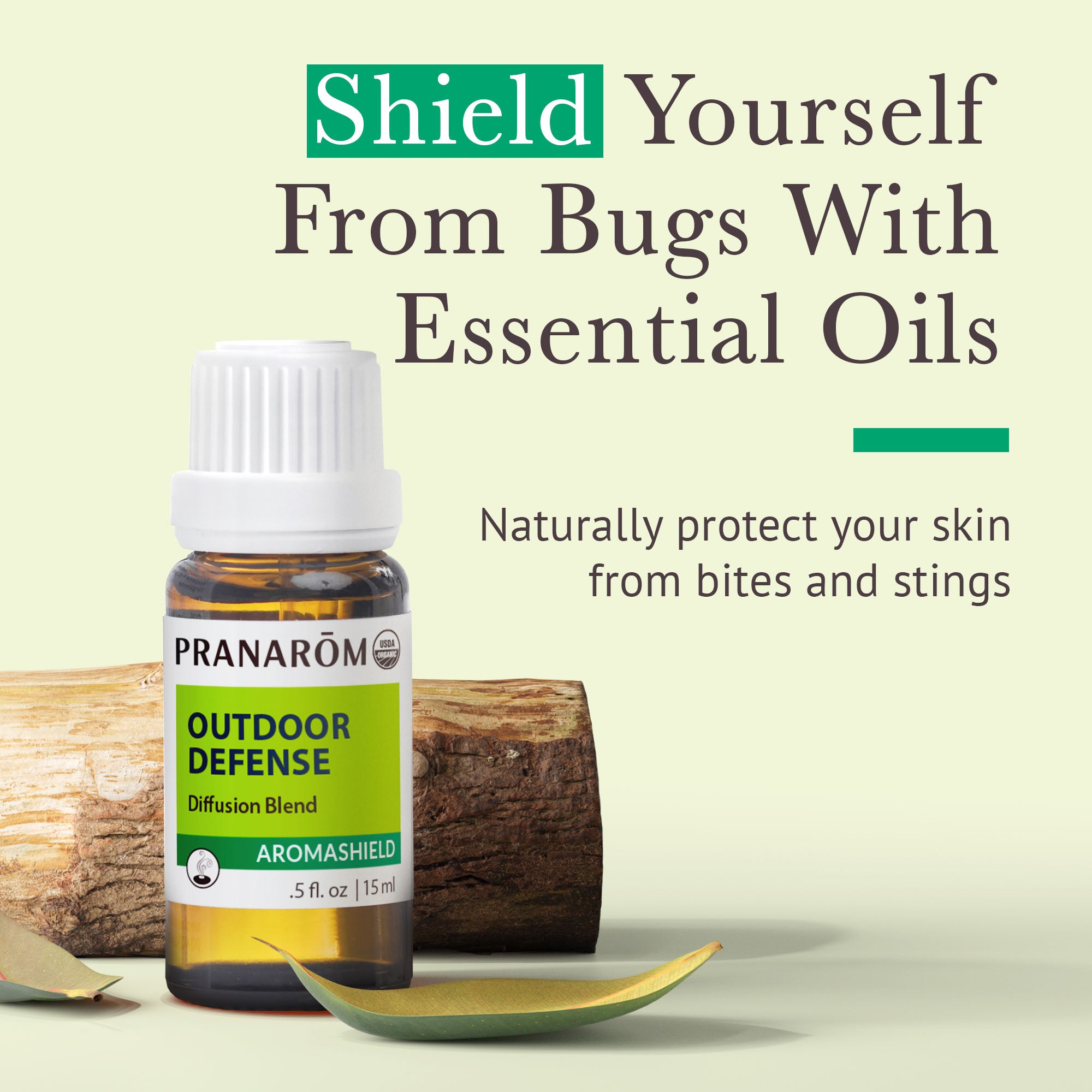 The Aromashield Outdoor Defense Diffusion Blend is our equivalent of citronella candle. Formulated with 100% pure essential oils, the blend has a fresh, green and citrusy scent of Citronella, Lemongrass, Eucalyptus Citriodora, Palmarosa, Tea Tree, Rose Geranium, Clove Bud, and Ginger.