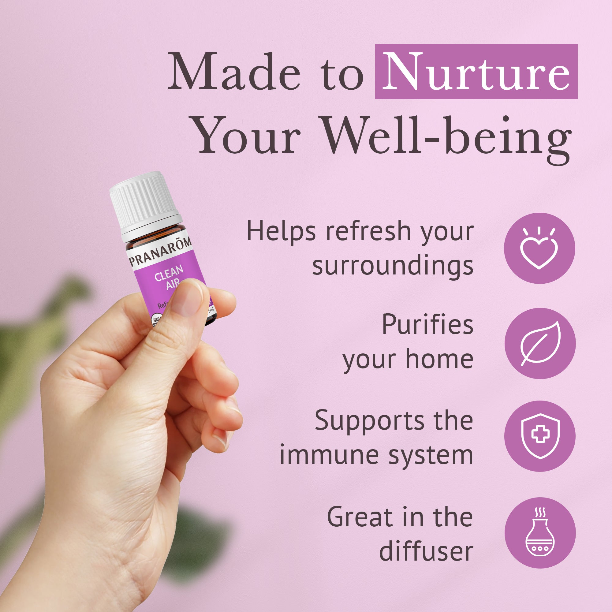 Refresh and purify your home with minty ravintsara, warm thyme, spicy clove and fruity blue tansy. An easy and natural air freshener alternative. 100% pure, certified organic essential oils. Read more